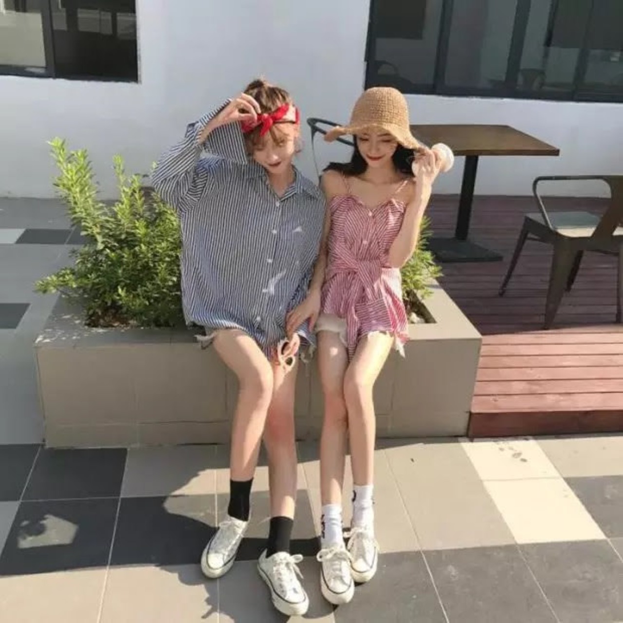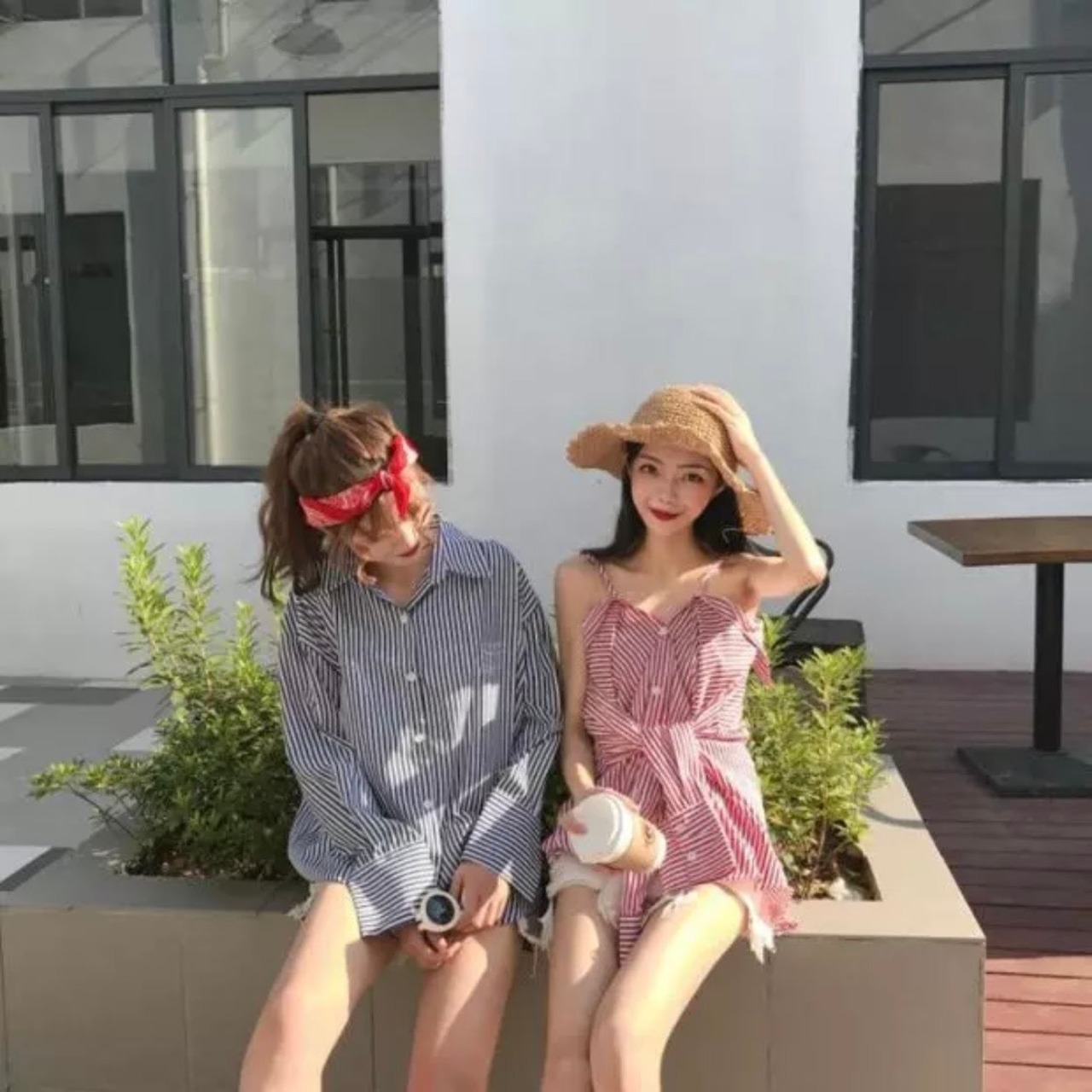 前を留めて少しオフショルにしてストラップを見せて着るのもオシャレ♪