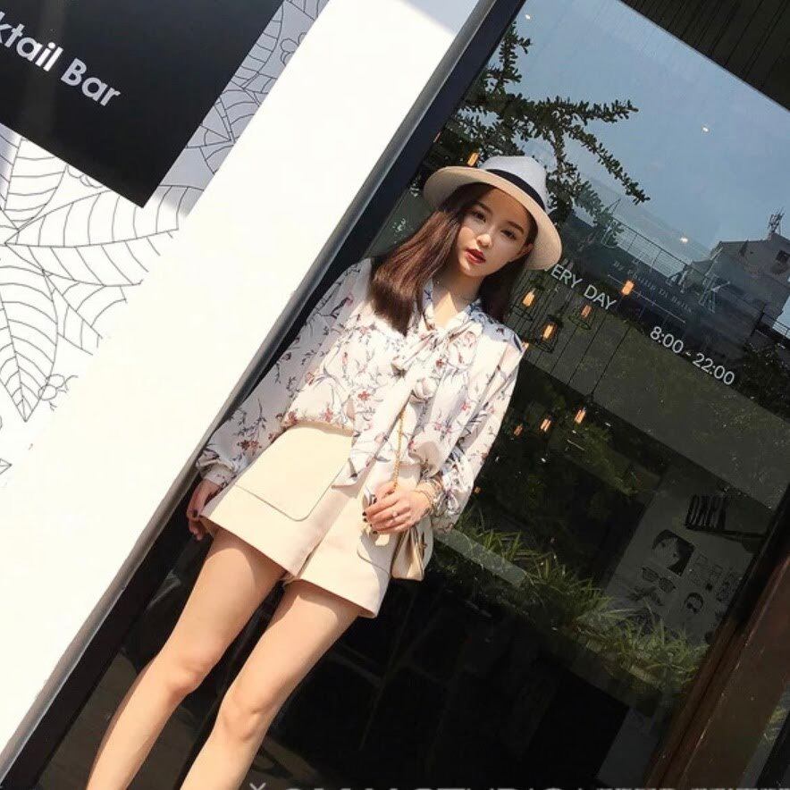 花柄シフォンのVネックブラウスです。