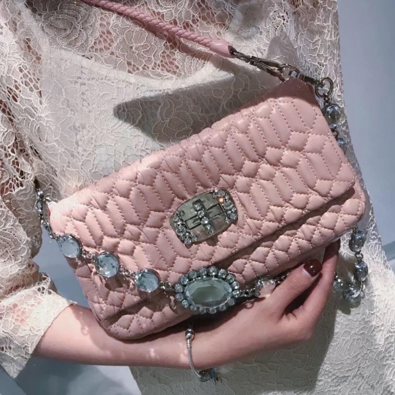 ビジューチェーン付きのマトラッセバッグです。