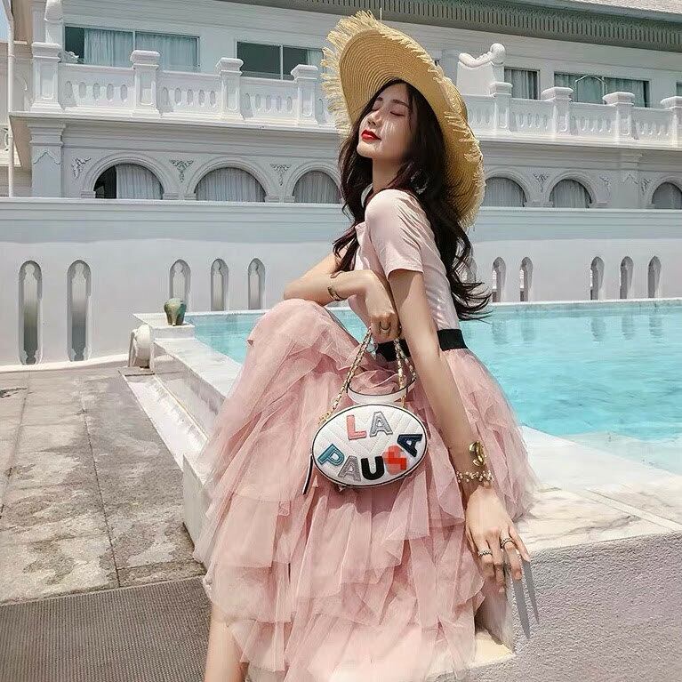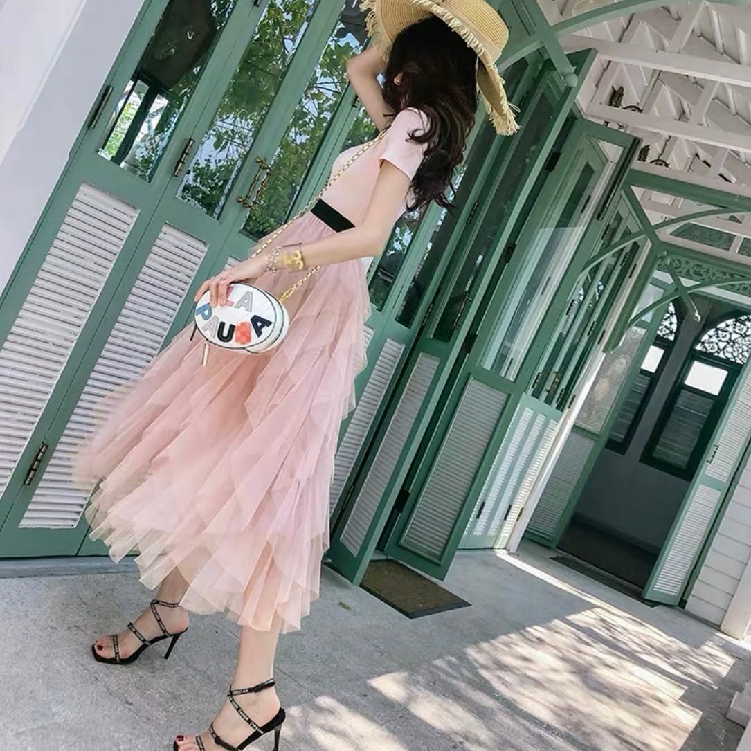 ふわっと広がるチュールスカートがガーリーな印象です。