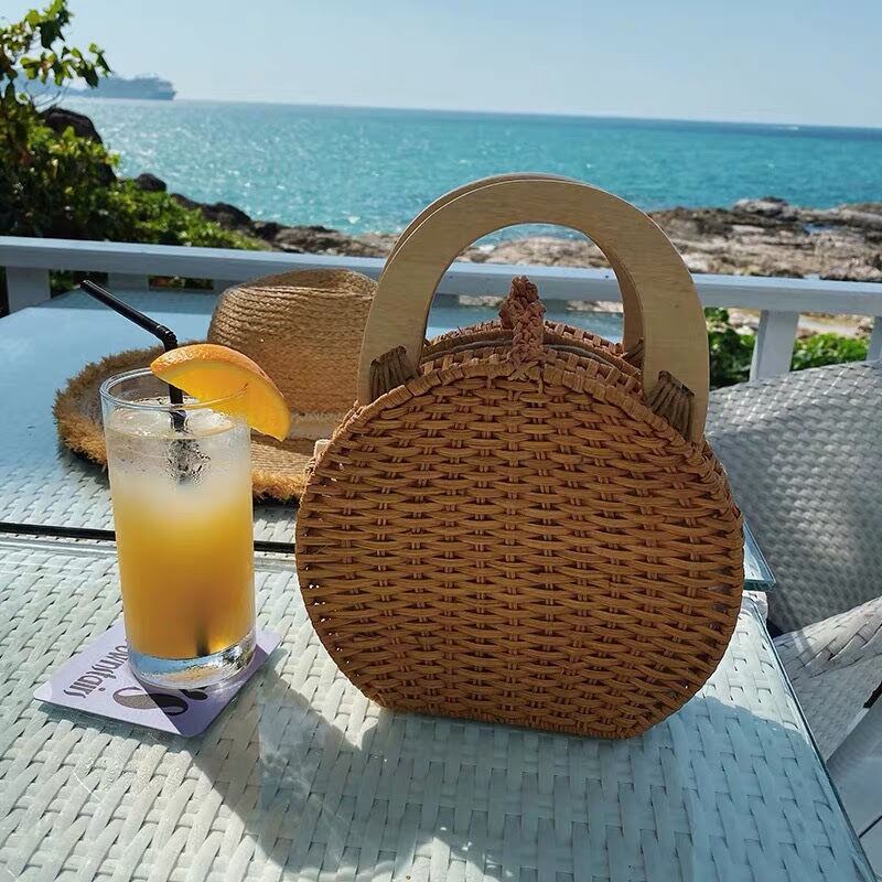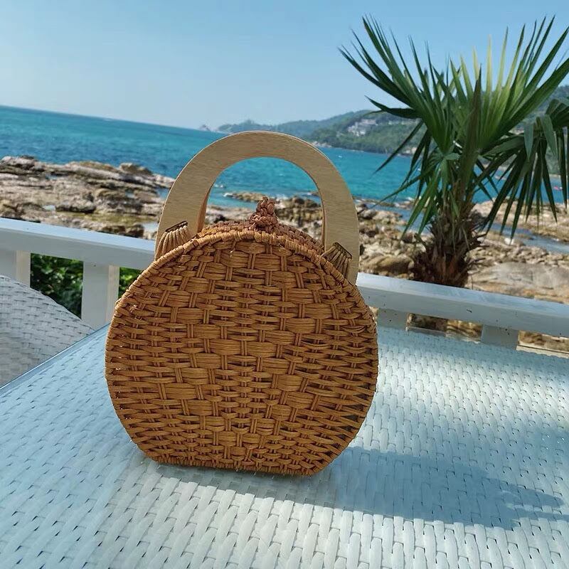 ウッドハンドルのかごバッグです。
