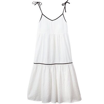ブラックリボンでパイピングされているので大人可愛く着れます。