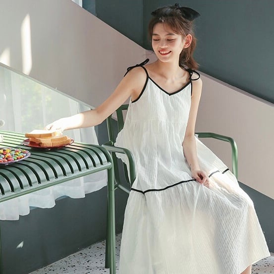 肩リボンが可愛いワンピースタイプのルームウェアです。