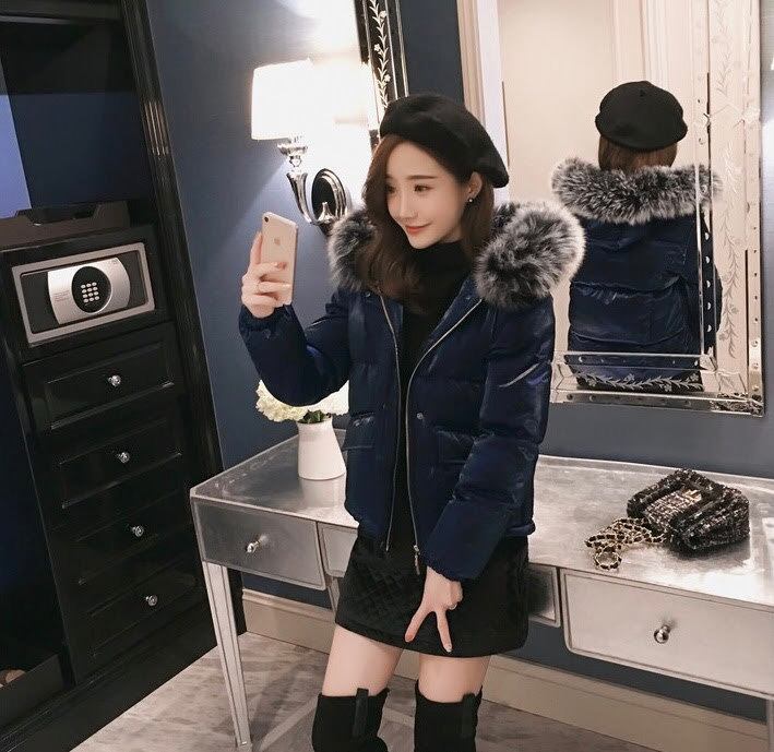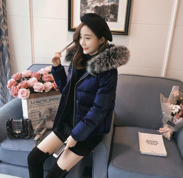ファーフード付き ショート丈ダウンジャケット ダウンコート 全2色